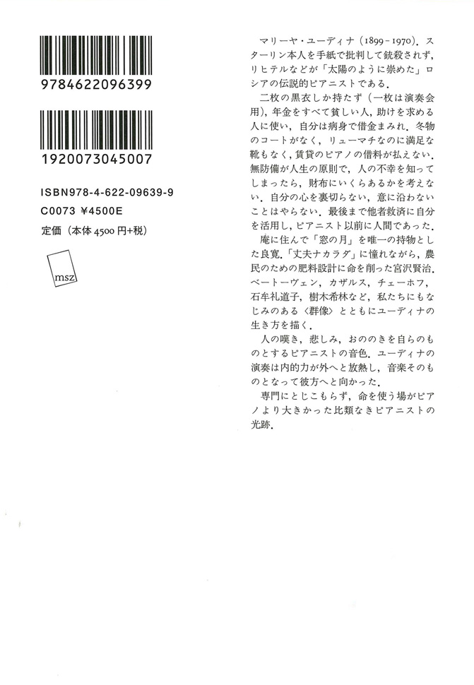 庵に住んで「窓の月」を唯一の持物とした良寛。「丈夫ナカラダ」に憧れながら、農民のための肥料設計に命を削った宮沢賢治。ベートーヴェン、カザルス、チェーホフ、石牟礼道子、樹木希林など、私たちにもなじみのある〈群像〉とともにユーディナの生き方を描く。