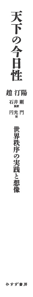 グローバル化により相互依存が不可逆的なまでに深化した今日の世界に必要なのは、世界を一つの政治主体として成立させる原理、すなわち〈天下システム〉である。そこでは、近代政治的な友敵区分を超えて、〈天下〉——“天の下のすべて”を包摂する秩序が志向される。最優先とされるのは、最大利益の追求ではなく〈関係〉の持続可能性であり、破局の回避こそが合理性の基準となる。合理性そのものを組み替えるこの視点に、本書の独自性が示される。