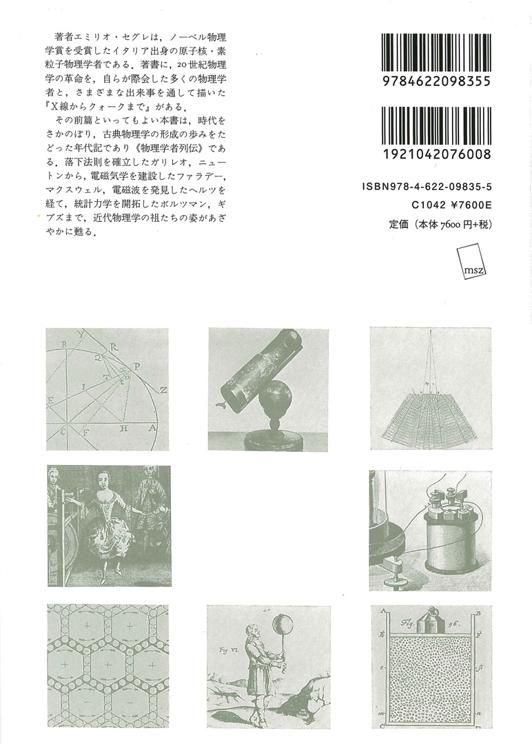 著者エミリオ・セグレは、ノーベル物理学賞を受賞したイタリア出身の原子核・素粒子物理学者である。著書に、20世紀物理学の革命を、自らが際会した多くの物理学者と、さまざまな出来事を通して描いた『X線からクォークまで』がある。